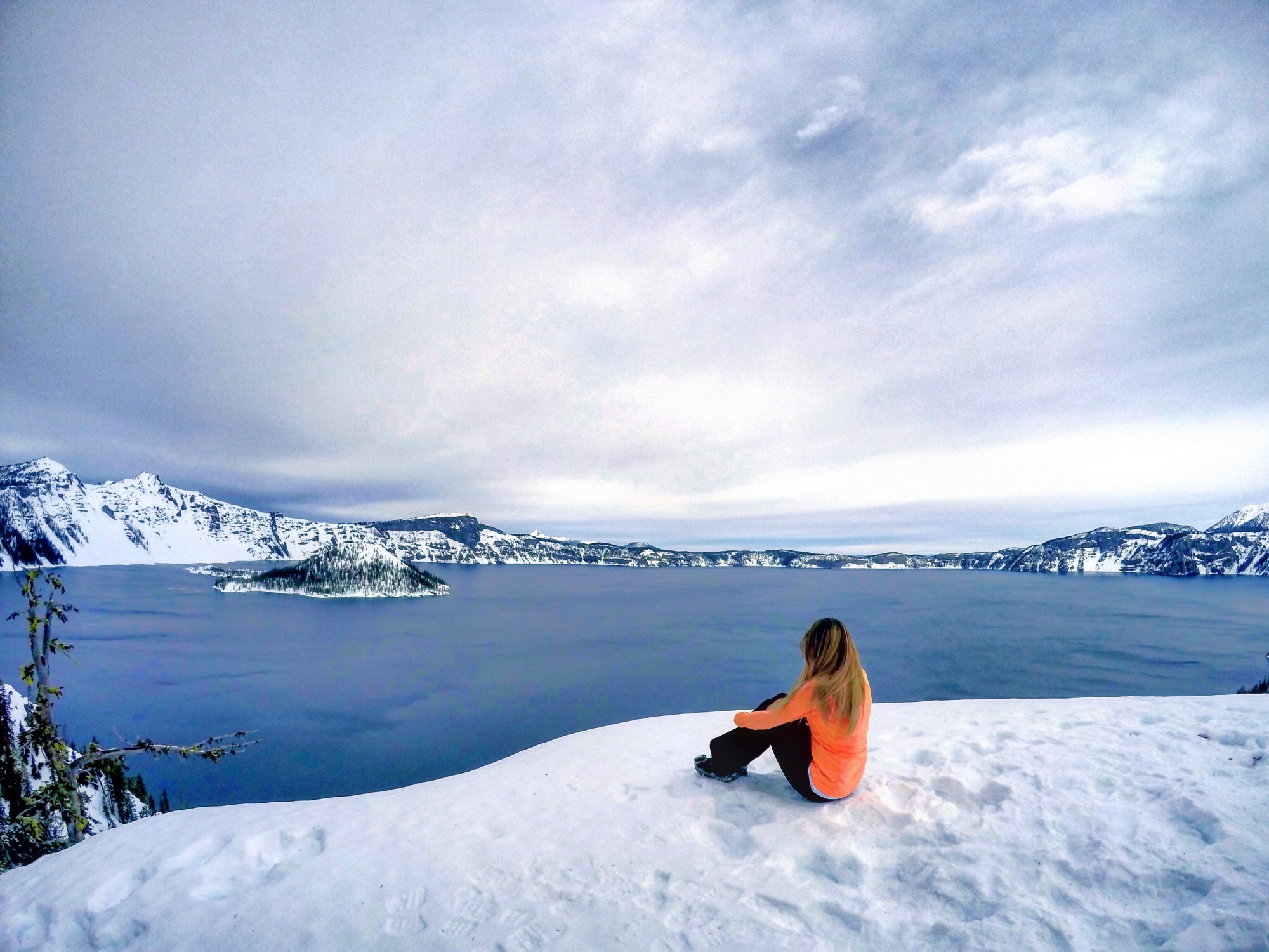 Snow covers Crater Lake National Park 8 months out of the year, with an average of 44 Feet a year. Visiting the national park in the winter is quite the adventure! I was lucky enough to go on a sunny day, with clear roads. My 2013 Honda Civic has been with me many places; she has safety driven through snow, ice, sleet, hail, and sand; she has recovered after being stuck in sand on a beach and in a ditch on a snowy road; she has been my shelter and safety many times. With that being said, I try not to push my limits too much with her, especially with all of the snow that accumulates in Crater Lake. Try to check the weather prior to planning your visit. During the winter and early spring, you are unable to see the lake because of the clouds.