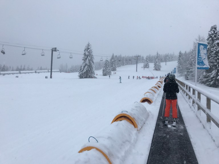 We rode up the carpet at first, which was a relief, because the ski lift was initially, a very scary thought. At the end of the day, we rode on the ski lift, to a little bit higher learn to ski area.