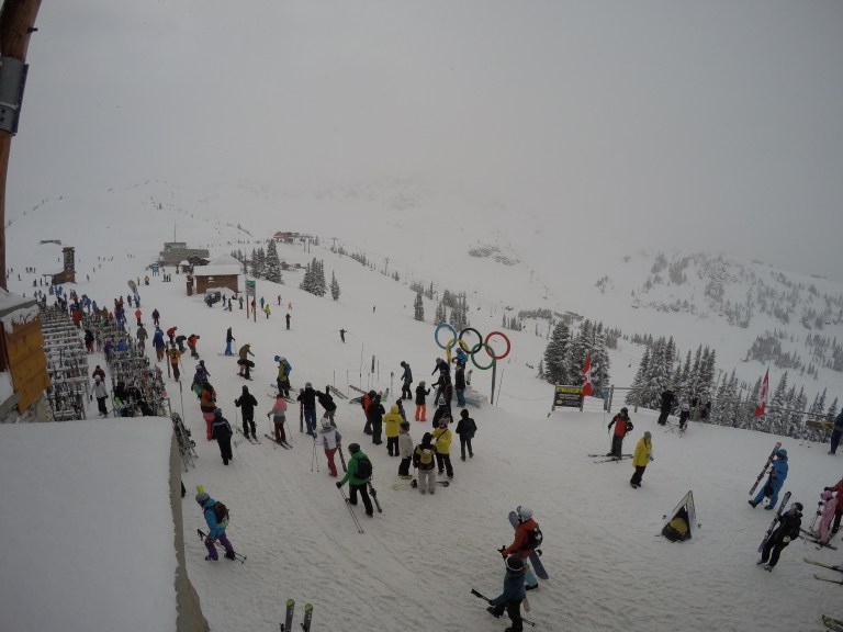 We spent day two in Whistler Mountain, which was so awesome. We started off on the carpet learn to ski area, but not for long, because it got super crowded, super quickly. After a couple of warm ups on the shorter carpet area, we headed to the top of Whistler Mountain for lunch and touristy attractions.