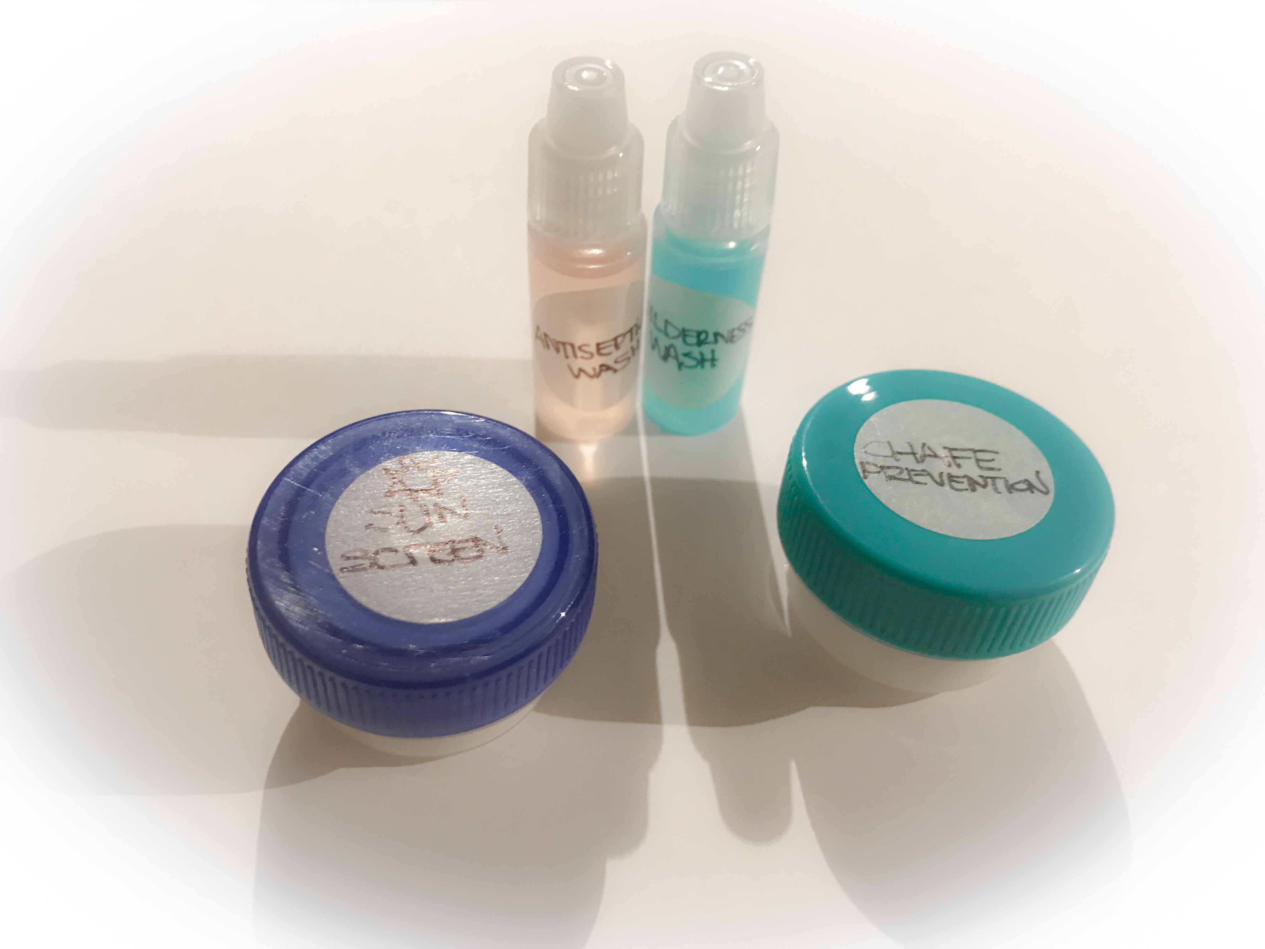 For instance, I purchased 1mL dropper bottles to put my soap in and tiny twist containers for sunscreen and chafe prevention; all of which, I filled and put into each resupply box. I have a micro toothpaste and half of a toothbrush.  Thanks to the awesome ZPacks (http://ZPacks.com).