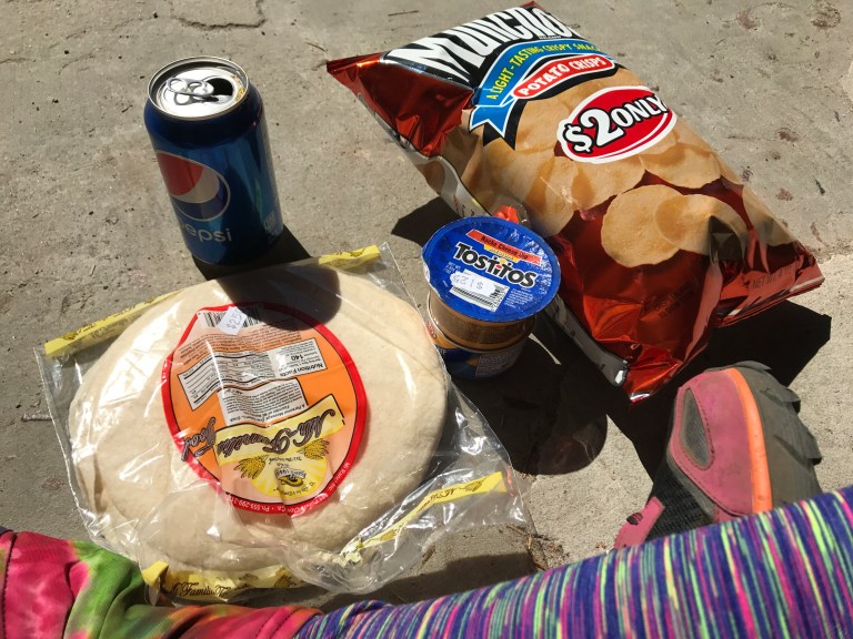 The water was plentiful the first and second day, which I took for granted. I only carried about 2 liters of water on me at a time. I don’t drink a lot of water anyway, so I often wouldn’t even go through one liter before coming upon another water source. And of course I brought left over pizza in my pack. Yummy!