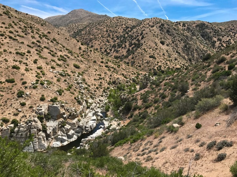 Another hot two miles, landed us at Deep Creek Hot Springs. Although I was too hot to soak in the warm hot springs, I jumped into Deep Creek, beside the springs. The water was so cold, but so refreshing. I didn’t spend too much time there before putting the pack back on and hitting the trail again. In the distance, views of mountain range after mountain range could be seen.