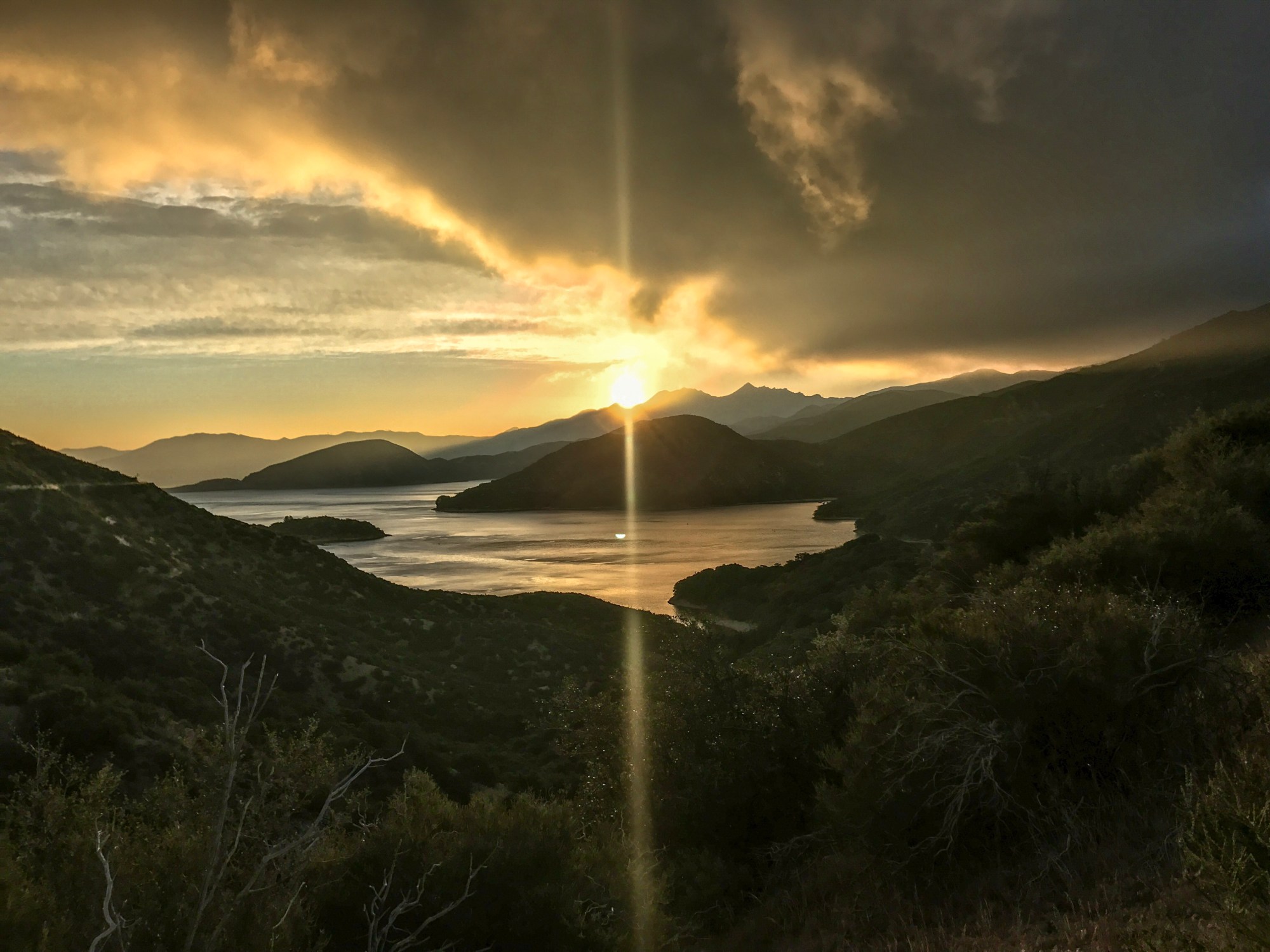On the map, I was right next to Silverwood Lake, but had no view of it. I was beginning to think it didn’t exist. At about mile 324.5, I struggled to continue up a hill, until I got a glimpse of the lake.