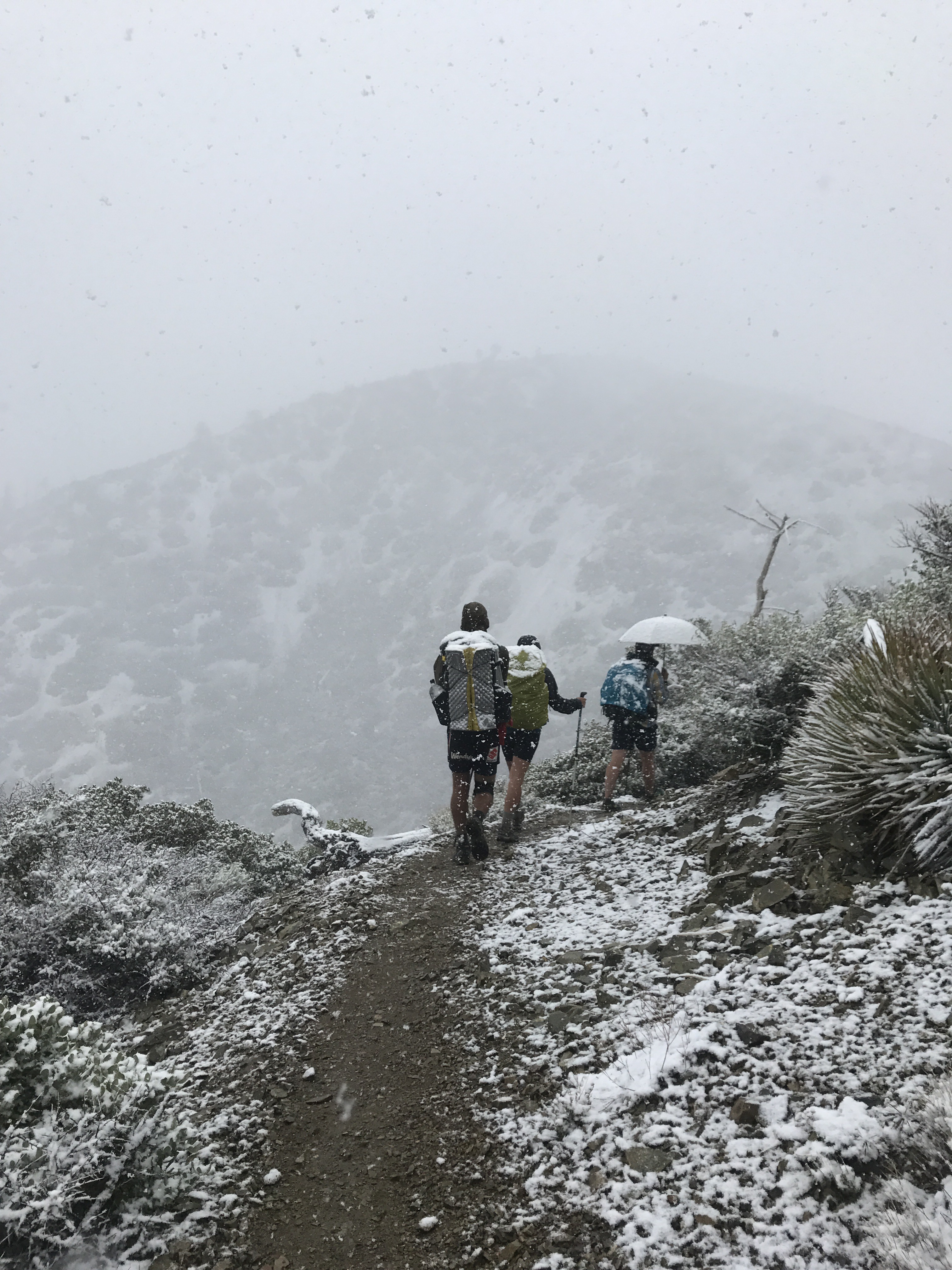 It continued to snow for hours. My hands were super cold. This day… this day, was the start of a few of my least favorite days. I unexpectedly started my period, and I know that you gentlemen don’t understand what this is like, but just imagine someone stabbing you and squeezing your insides every few minutes, with pain radiating into your back and neck, all while carrying a heavy pack, buckled around your abdomen that is constantly being squeezed, all while climbing thousands of feet and being freezing cold. Now that I’ve painted this picture for you, imagine 76% of your energy being taken from you and your muscles just feeling so tired. This, this is what it is the only way I can describe what it is like to be in your period on the PCT. I know you men don’t want to read about it, hear about it, or think about it, but suck it up buttercup; be thankful you don’t actually have to go through it every month.