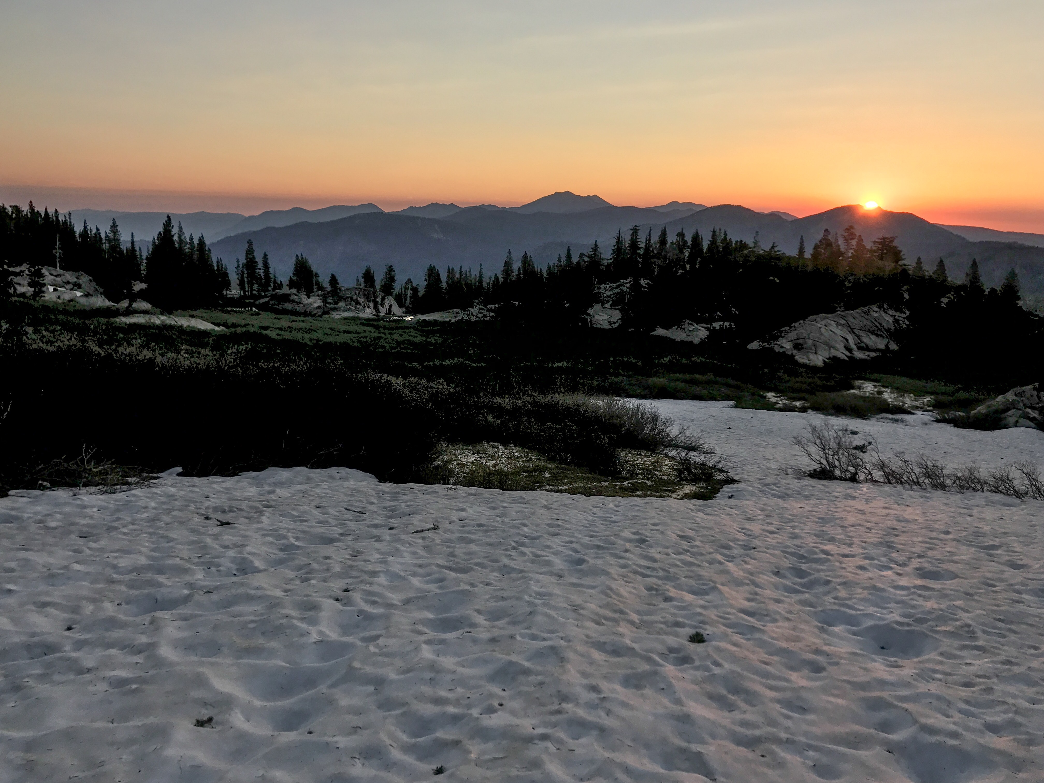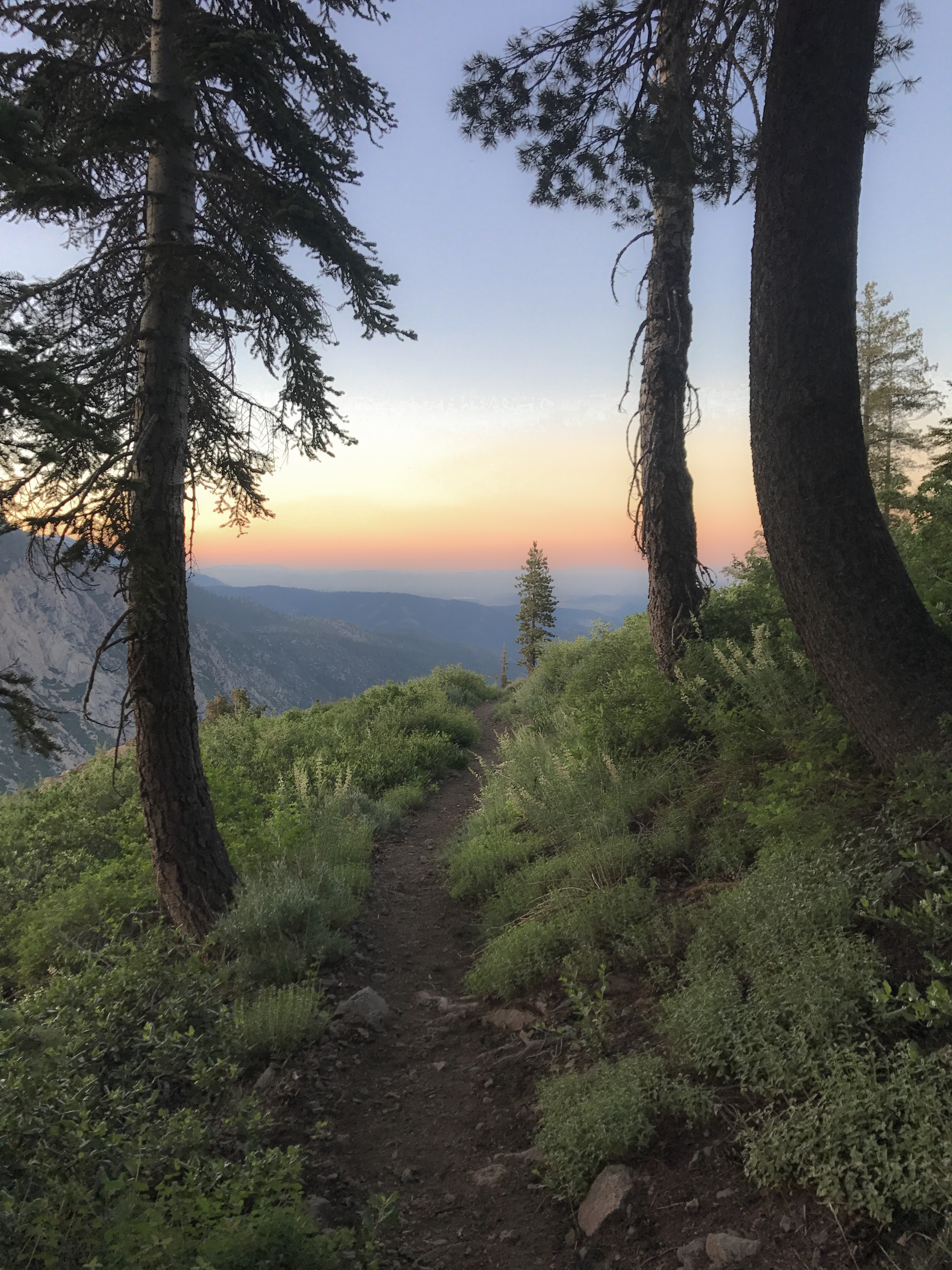I camped with some new trail friends, but socializing wasn’t really happening, as I got in pretty late, and the mosquitos were terrible. The camp site was next to a decent size cascading creek, which is one of my favorite places to camp next to, as the sound puts me to sleep and I don’t hear others snore. It was the lowest elevation I had camped at, since the start of the Sierra Nevada section. It was also the first time I wasn’t cold going to sleep; in fact, I didn’t even put the fly on my tent. The break in the trees revealed a perfectly clear night sky, with billions of stars shining through the dark sky. What a perfect day.