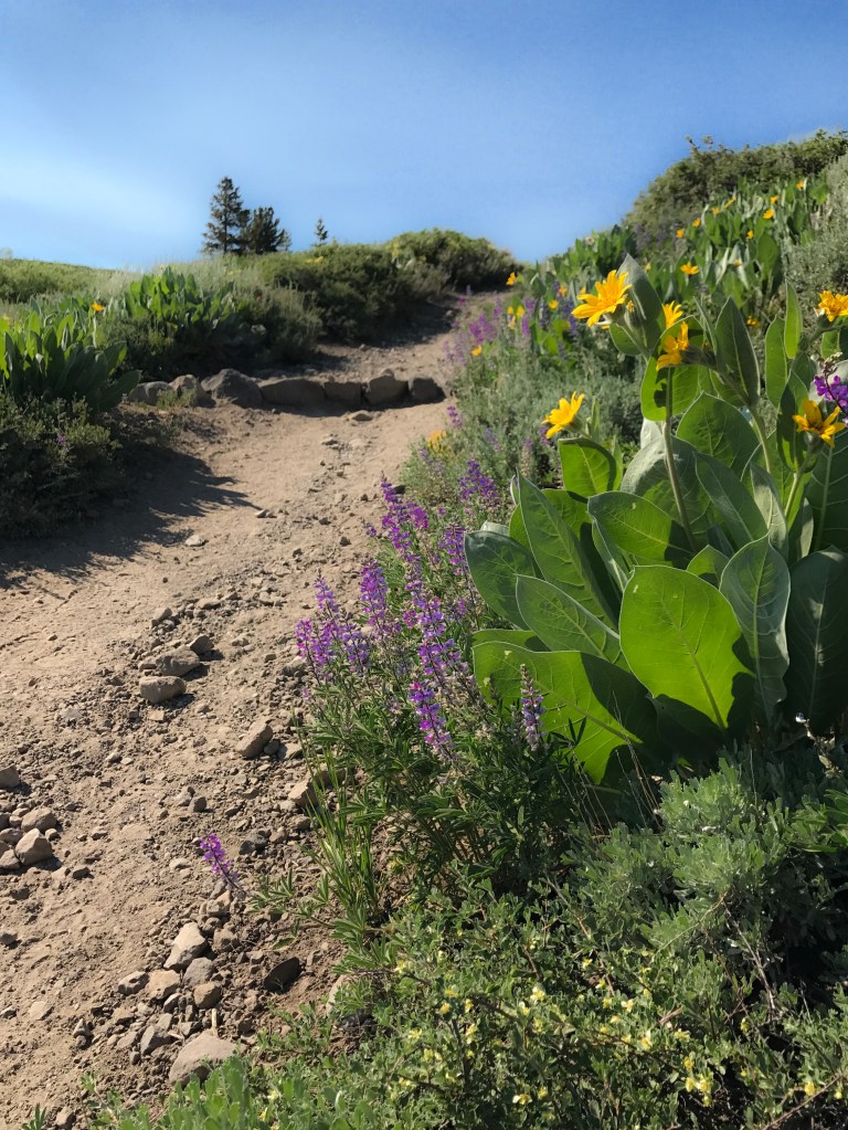 Wildflowers, green meadows, cascading creeks, sparkling boulders, slippery mud, melting snow, skinny trees, fallen trees, are just a few words to describe the day.